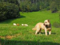 Mittagsschlaf im Rinderstall Nadine mit Sydney Monty und die Heidschnucken